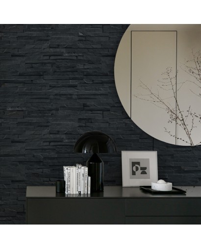 Slimstone is our flagship product in natural stone cladding. Aesthetic, timeless and harmonious. With its authentic look, easy installation and varied color tones, your interior is sublimated. Bring modernity and trend with the black Slimstone cladding. Its refined, raw look will look great in industrial interiors to complement your brightly colored furniture.